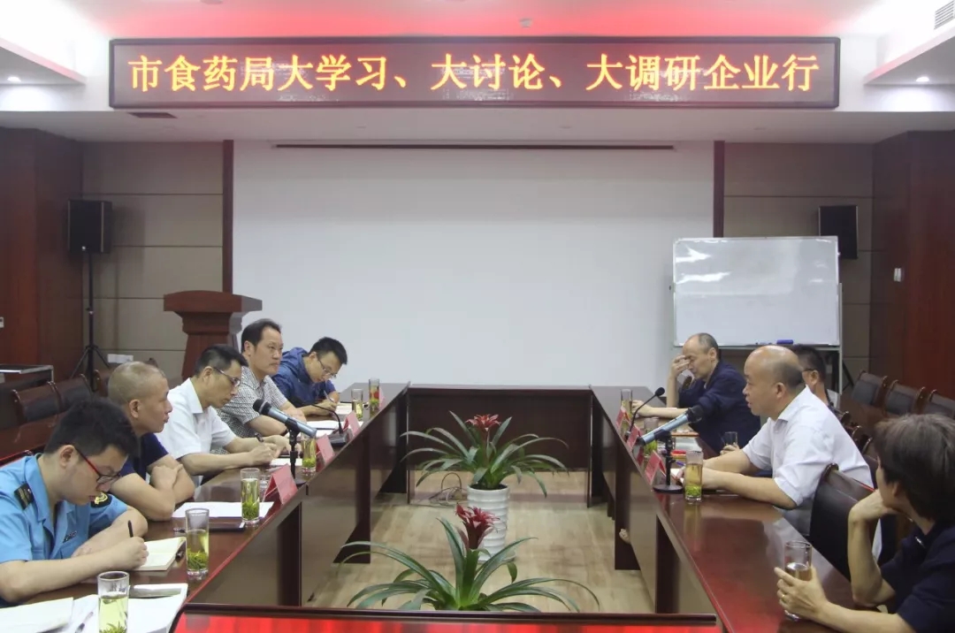 11 18-062018年6月8日上午,內(nèi)江市食品藥品監(jiān)督管理局局長(zhǎng)陳三、副局長(zhǎng)付彬、經(jīng)開(kāi)區(qū)食藥辦主任盧永強(qiáng)等領(lǐng)導(dǎo)到四川梓橦宮藥業(yè)股份有限公司開(kāi)展“大學(xué)習(xí)、大討論、大調(diào)研”企業(yè)行活動(dòng)。梓橦宮藥業(yè)董事長(zhǎng)唐銑博士、總經(jīng)理陳燕女士、副總經(jīng)理陳健先生陪同調(diào)研。