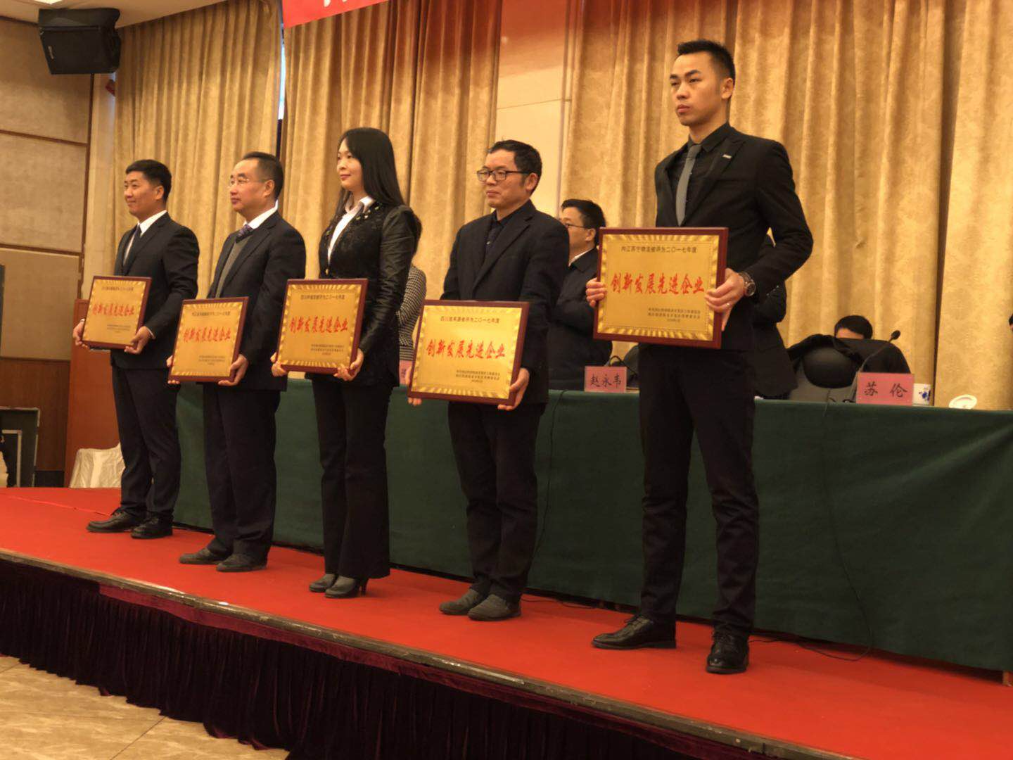 12 18-022018年2月11日,內(nèi)江市經(jīng)濟(jì)技術(shù)開發(fā)區(qū)召開2017年總結(jié)表揚(yáng)暨2018年經(jīng)濟(jì)工作會(huì)。 四川梓橦宮藥業(yè)股份有限公司榮獲2017年度“創(chuàng)新發(fā)展先進(jìn)企業(yè)”和“經(jīng)濟(jì)發(fā)展貢獻(xiàn)獎(jiǎng)一等獎(jiǎng)”,同時(shí)梓橦宮藥業(yè)董事長唐銑博士被評為2017年度“優(yōu)秀企業(yè)家”!