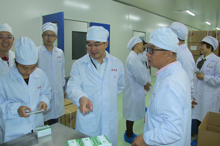 21 16-092016年9月20日上午,內(nèi)江市委副書(shū)記牟錦毅、市委副秘書(shū)長(zhǎng)肖從亮、經(jīng)開(kāi)區(qū)管委會(huì)主任趙永韋等領(lǐng)導(dǎo)到四川梓橦宮藥業(yè)股份有限公司視察。