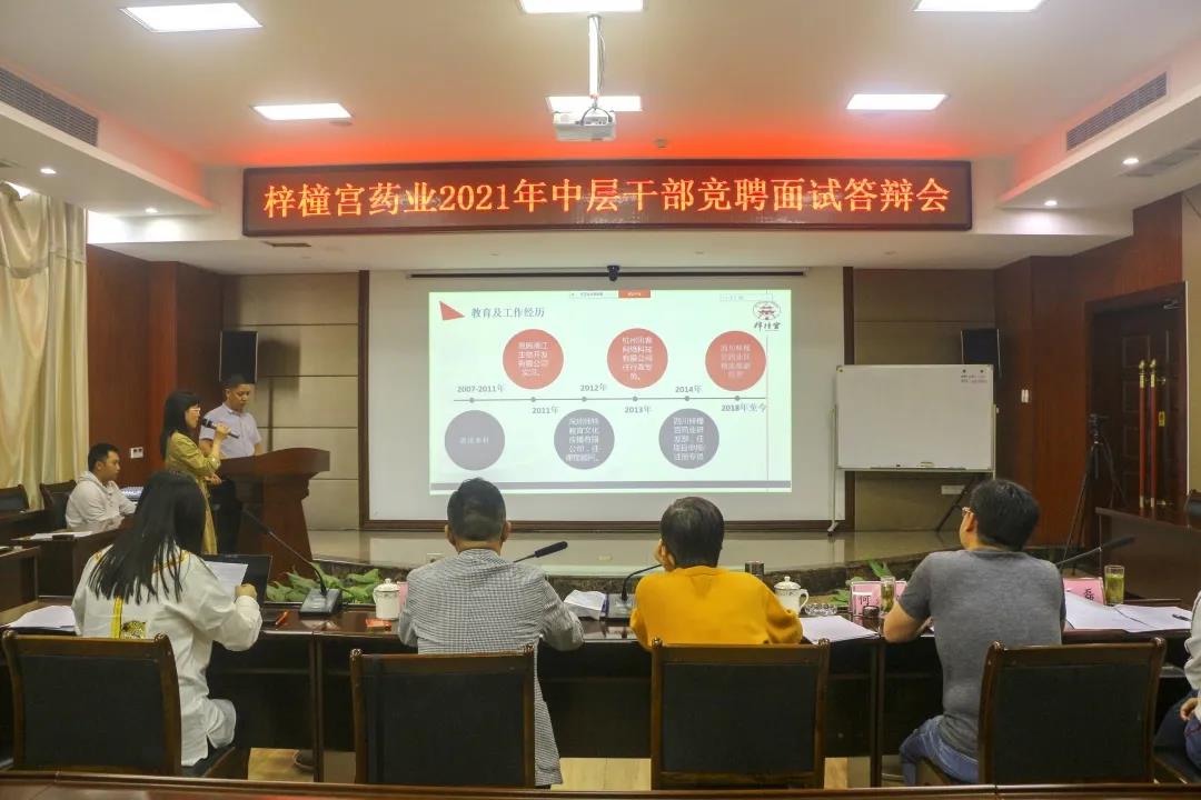 27 21-044月26日,四川梓橦宮藥業(yè)股份有限公司舉行“2021年中層干部競聘會”,公司董事長唐銑博士,總經(jīng)理陳燕女士,副總經(jīng)理陳健等7名高管組成評委會。